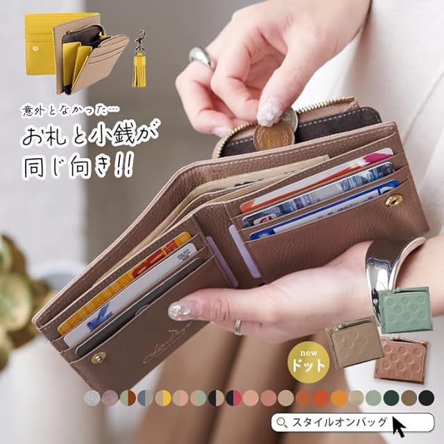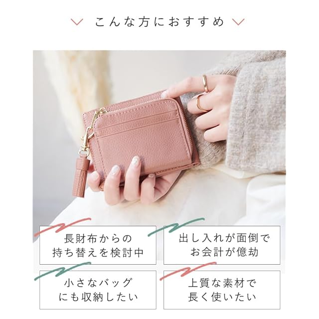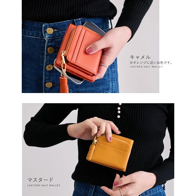 LIZDAYS/デザイン性と機能性が共存、タッセル付き二つ折り財布 革本来の良さが実感できるシンプルなデザイン。 女性の手にもスッと収まる小さめのサイズ感ながら大容量で使いやすい。 カードポケットは合計10枚収納可能で、お札入れも2ポケットになっており、 レシートやお札の種類によって分けられる。 小銭入れも大きく開くL字ファスナーでたくさん入ります! シボ感のある柔らかな肌さわりもポイントです。 取り外し可能なタッセル付き! こだわりの本革を使用したLIZDAYSだけのシリーズ◎ 手に馴染みやすく男性にも女性にも持ちやすい 丈夫で柔軟性があるので使いやすく、使えば使うほど、自分だけの味わい深いアイテムに。