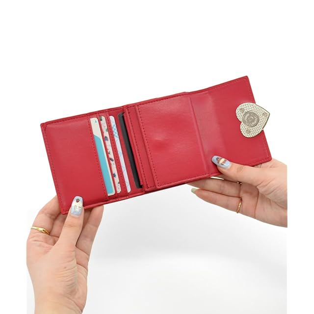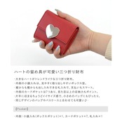・大きなハートがトレンドライクな三つ折り財布。・内側の小銭入れは、見やすく取り出しやすいボックス型。・縦からも横からも出し入れできる札入れで、支払いもスマート。・内側のカードポケットは7つあり、見た目以上の収納力もポイント。・片手に収まるちょうどイイサイズ感で、小さめのバッグにもぴったり。・同じデザインのバッグやパスケースと合わせても可愛い♪