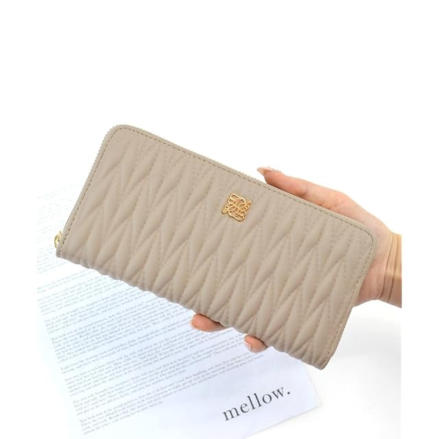 【サイズ】横幅:19.5cm 高さ:10cm マチ:2cm <br><br>【素材】合成皮革<br>【仕様】開閉:ファスナー内側:小銭入れ×1、オープンポケット×2、ファスナーポケット×8<br>【重さ】約170g<br>・人気のキルティングシリーズから収納がいっぱいの長財布が登場!<br>・開閉はラウンドファスナーになっており、中身が一目でわかりやすい。<br>・小銭入れはL字ファスナーになっており、コインが取り出しやすい仕様。<br>・カードポケットは8つ付いているので、たくさんカードを持っていても安心♪<br>・領収書などの保管に便利なオープンポケットも2つ付いています。<br>・プレゼントにもおすすめのアイテム。