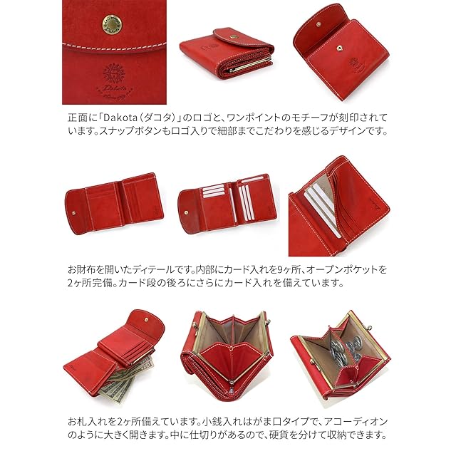 商品名:[ダコタ] がま口二つ折り財布 本革 レディース レッド DA-36441-30