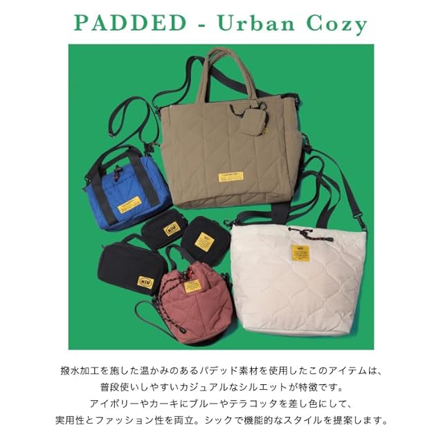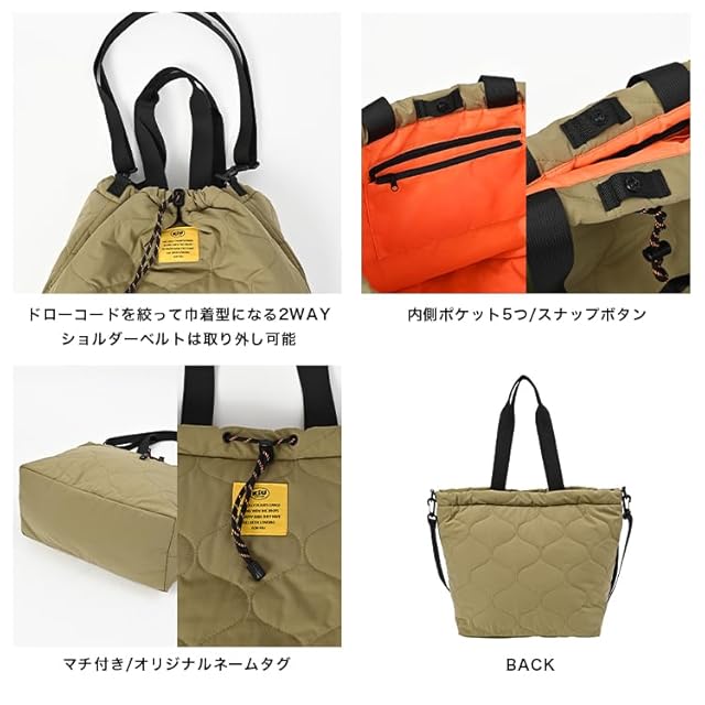 商品名:KiU キウ パデッドドロストトートバッグ PADDED DRAWSTRING TOTEBAG 防水 撥水 キルティング マザーズバッグ 大容量 ショルダー 巾着 シンプル おしゃれ かわいい カジュアル アウトドア 秋冬 カーキ K475-906