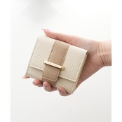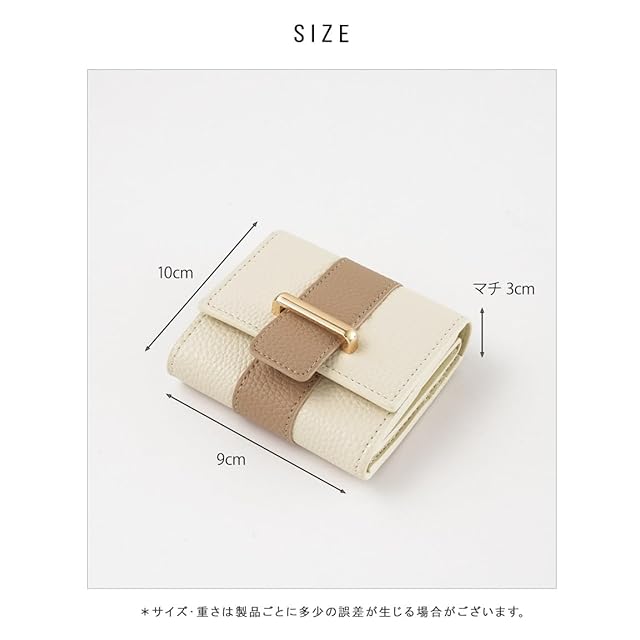 【サイズ】横幅:10cm 高さ:9cm マチ:2.5cm<br> 【素材】:合成皮革<br> 【仕様】:開閉:スナップボタン 内側:札入れ×1 カードポケット×7 小銭入れ(ボックスポケット)×1<br> 【重さ】:約95g<br> ・高級感のあるシボ感が高見えする三つ折り財布。<br> ・内側の小銭入れは、見やすく取り出しやすいボックス型。<br> ・縦からも横からも出し入れできる札入れで、支払いもスマート。<br> ・内側のカードポケットは7つあり、見た目以上の収納力もポイント。<br> ・片手に収まるちょうどイイサイズ感で、小さめのバッグにもぴったり。<br> ・デイリー使いから旅行やちょっとしたお出かけに大活躍。