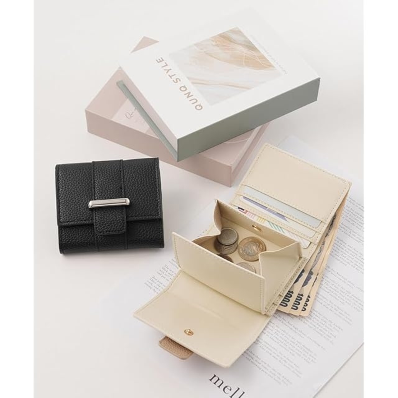 ・高級感のあるシボ感が高見えする三つ折り財布。 ・内側の小銭入れは、見やすく取り出しやすいボックス型。 ・縦からも横からも出し入れできる札入れで、支払いもスマート。 ・内側のカードポケットは7つあり、見た目以上の収納力もポイント。 ・片手に収まるちょうどイイサイズ感で、小さめのバッグにもぴったり。 ・デイリー使いから旅行やちょっとしたお出かけに大活躍。