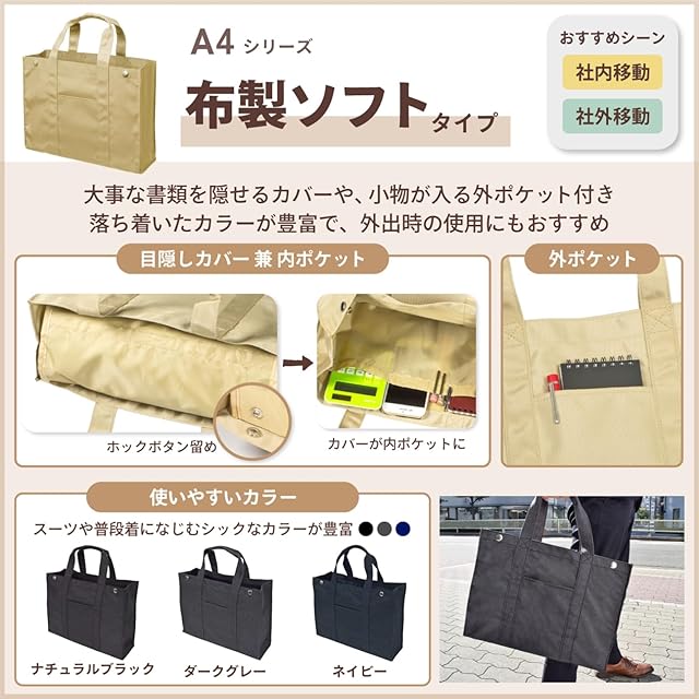 【特長3】軽くて丈夫/耐荷重10kg/マチが広いトートバッグ型/ポリエステル100%