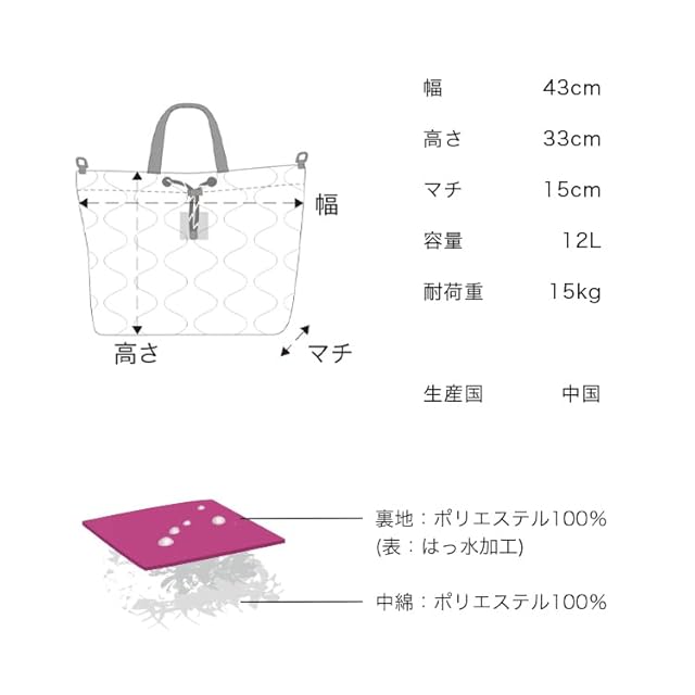 ■ はっ水加工を施したキルティング生地を使用 ■ 内ポケット5つ ■ ショルダーベルト有/ 取り外し可能 ■ 2WAY仕様 ■ 容量 : 12L ■ 耐荷重 : 15kg