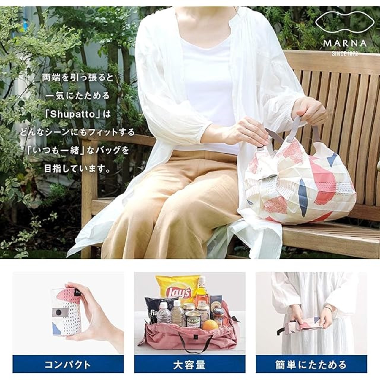 商品名:[マーナ] Shupatto コンパクトバッグ L (リニューアル) SEN (せん) シュパット エコバッグ 折りたたみ 買い物袋 (大容量/丈夫)