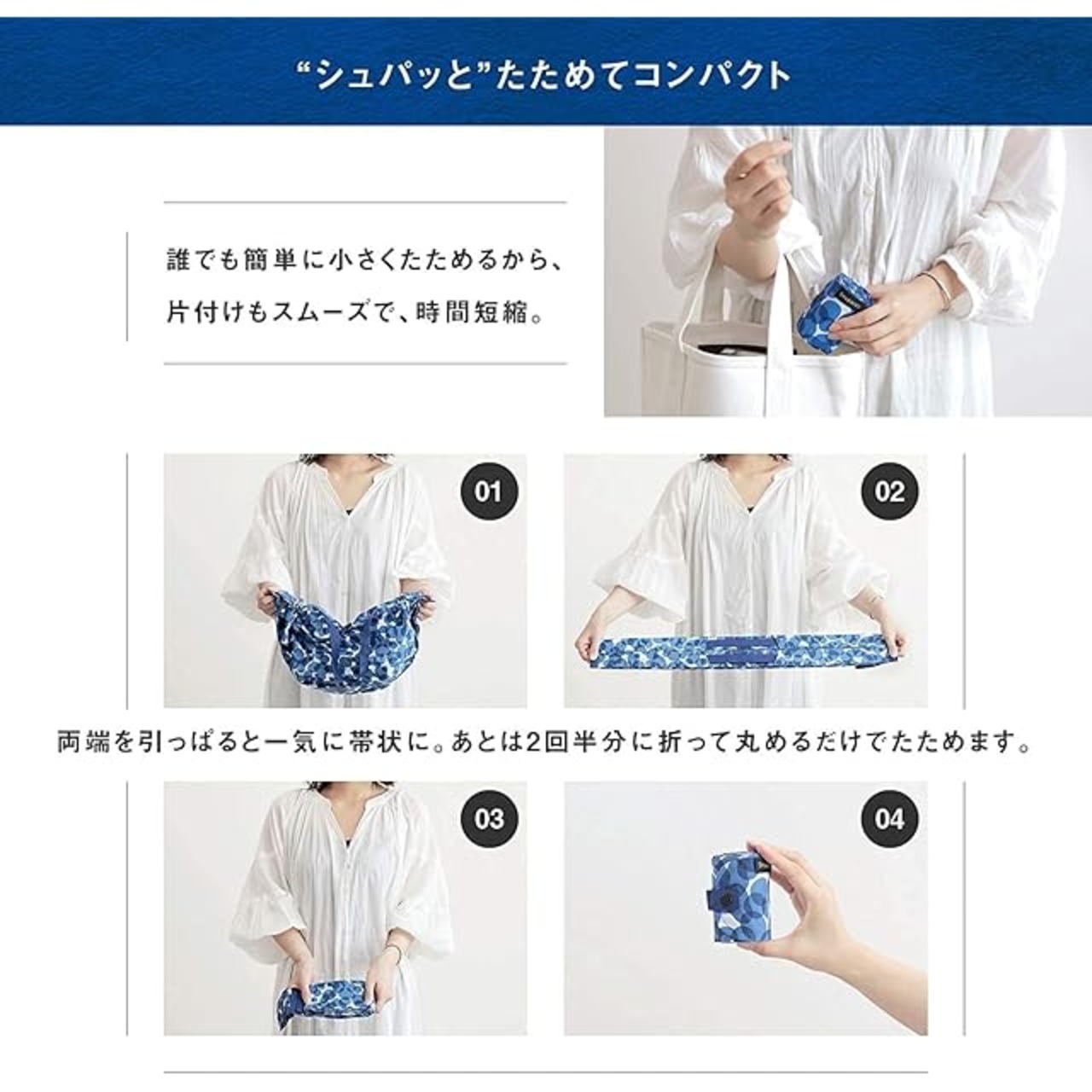 【シュパッとキレイにたためるエコバッグ】全体をサイズアップし、レジかごをすっぽり覆って余裕をもって掛けられるサイズになりました。また、薄手の生地へ変更したことで、さらにすっきりとコンパクトに、より持ち運びやすくなりました。