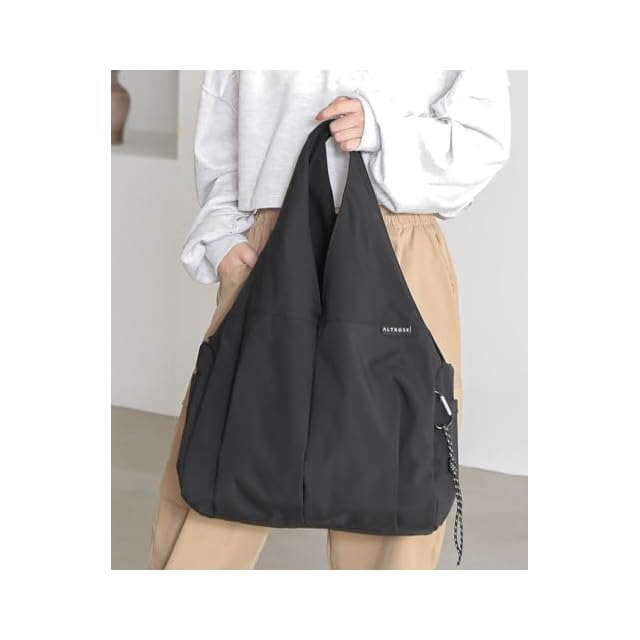 [アルトローズ] ブラック トートバッグ レディース ビッグ BIG トート バッグ 大きめ 大容量 A4 ナイロン マチあり 大きい 大型 ママバッグ 大型 ティム オシャレ 可愛い キャンプ アウトドア 肩掛け 女子 女性 250109-01 | LIS MART
