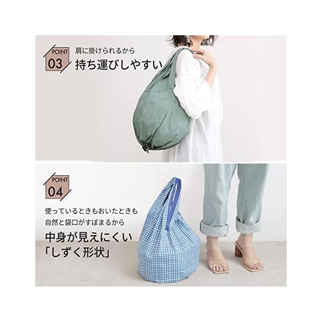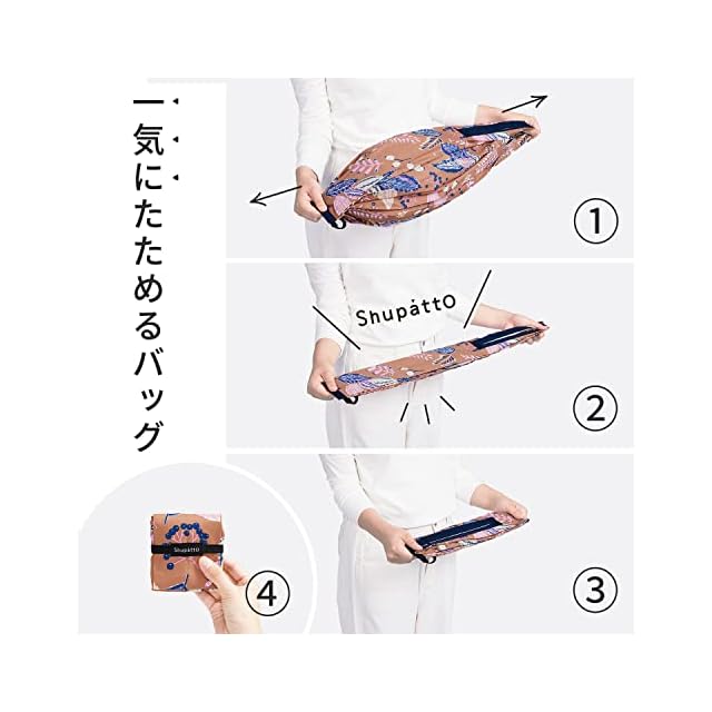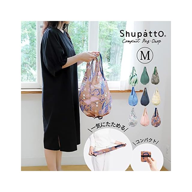 両端を引っ張って、一気にたためるエコバッグ「Shupatto(シュパット)」。「コンパクトバックDrop」はタテ型タイプのコンパクトバッグです。