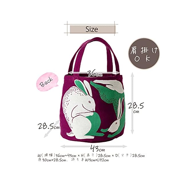 商品名:楠橋紋織 【moritaMiW】 MiW トートバッグ 平原の花のウサギたち パープル 【A-67836-90-PAP】