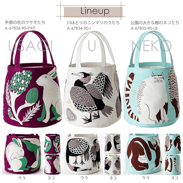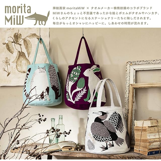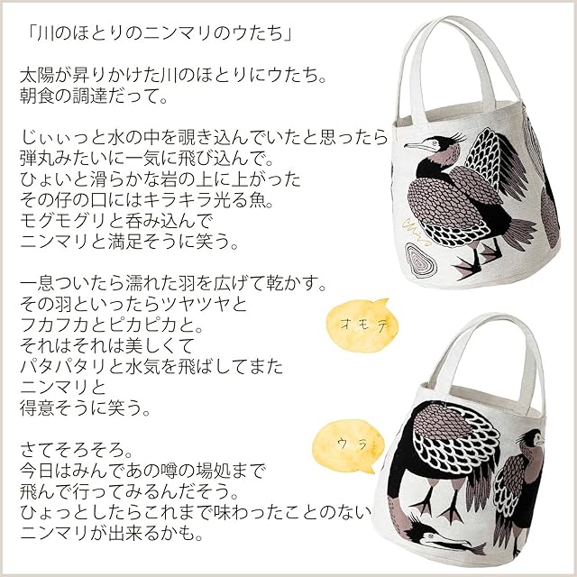 商品名:楠橋紋織 【moritaMiW】 MiW トートバッグ 川ほとりのニンマリのウたち アイボリー 【A-67834-90-I】
